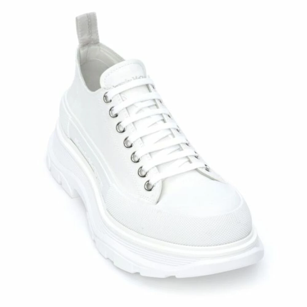 Hvite bomull lerret joggesko • Oppvokst Alexander McQueen-logo til yttersiden • gummi tåhette • syv-øyet blonderfesting med flate hvite snøringer • tonalbokstaver på tungen • bakre trekkfane med McQueen-bokstaver • Overdrevet gummiplattform såle og trim i hvitt • Sammensetning: Bomull, myknet stoff, polyester • Laget i Italia Produkt-ID: 37481 Original Pris: EUR 490 TRING: SolidMateriale: CanvassHape: Low-Toplacing: Slip-On