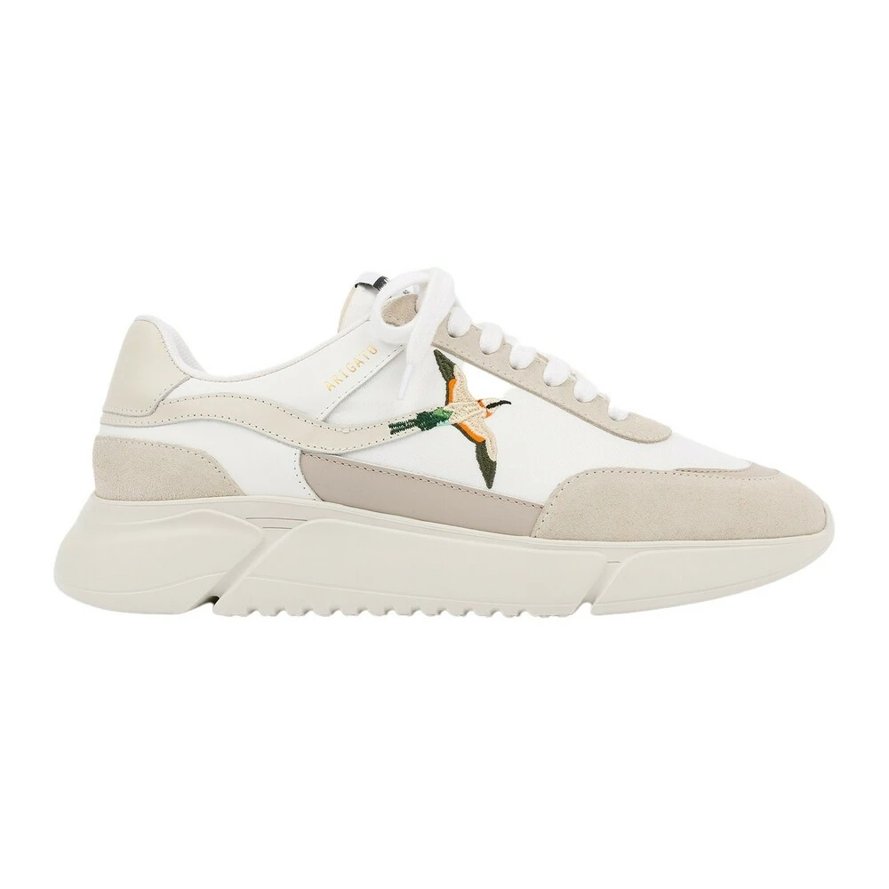Genesis Stripe Bee Bird presenterer den første sammenslåingen av signaturen Arigato Bee Bird og den ikoniske Genesis Vintage Runner. Den forhøyede bedfuglbroderiet er koblet til fanen Back gjennom en fargekoordinert skinnbølge. Tekstiler produseres ansvarlig ved hjelp av resirkulerte kjæledyrflasker og havplast samlet av Seaqual -initiativet.