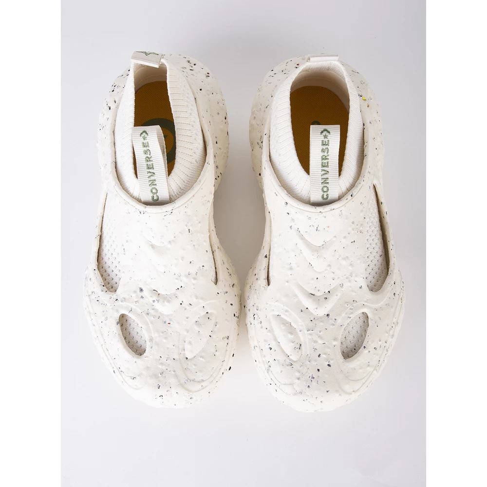 Lys rosa ‘svampkrater’ joggesko fra Converse. Denne modellen er laget av CX -skum og stoff, og sitter på en lyserosa skum såle og har en strukturell øvre med ovale åpninger og et grosgrain -tape med lysegrønn logo -broderi.
