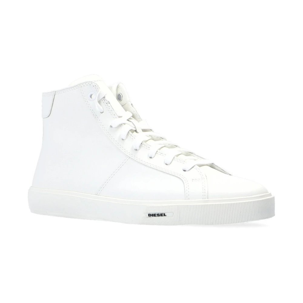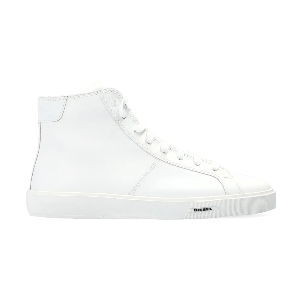 White ‘S-Mydori’ høye top joggesko fra Diesel. Denne blonderdesignet er laget av skinn, og har en preget logo bakerst og en hvit gummisåle.