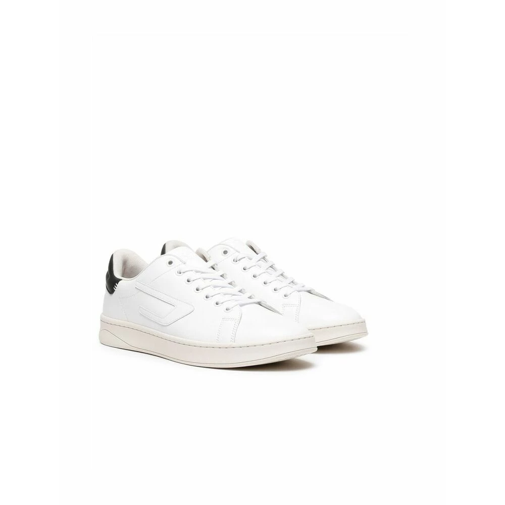 White ‘S-Athene Low’ joggesko fra Diesel. Denne blondermodellen er laget av skinn og trimmet med gummi, og sitter på en hvit gummisåle og har en D-monogramplaster på siden, en svart hælbenk og en preget logo på tungen.