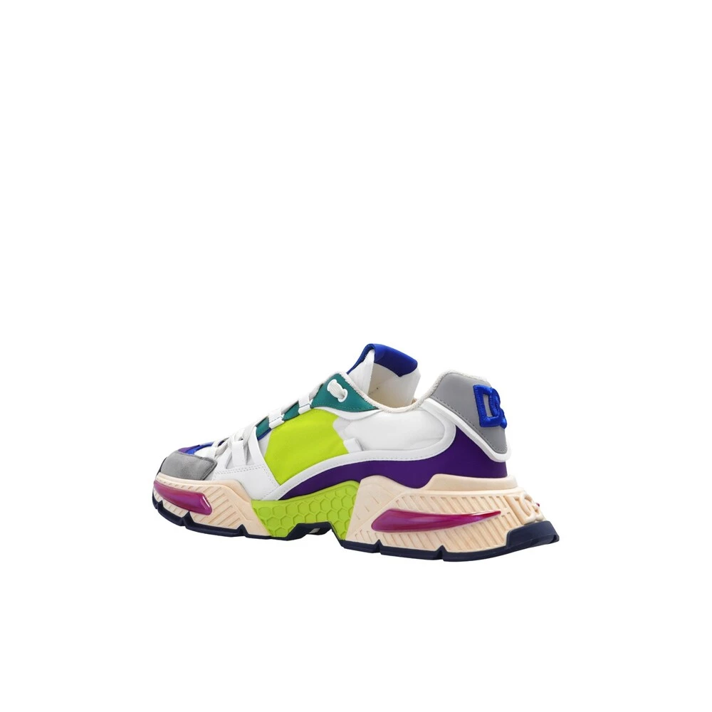 Flerfargede ‘Air Master’ joggesko fra Dolce & Gabbana. Med en øvre laget av en blanding av forskjellige stoffer, har denne blonder-modellen kalveskinntrimmer, logo-detaljering og en flerfarget gummisåle.