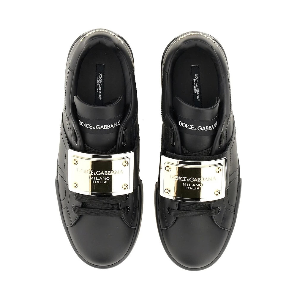 Rubber Sole: 3 cm, lær øvre med bigalvanisk logo -plakett, flate snøringer, logo -fane og hæl, laget i Italia.
