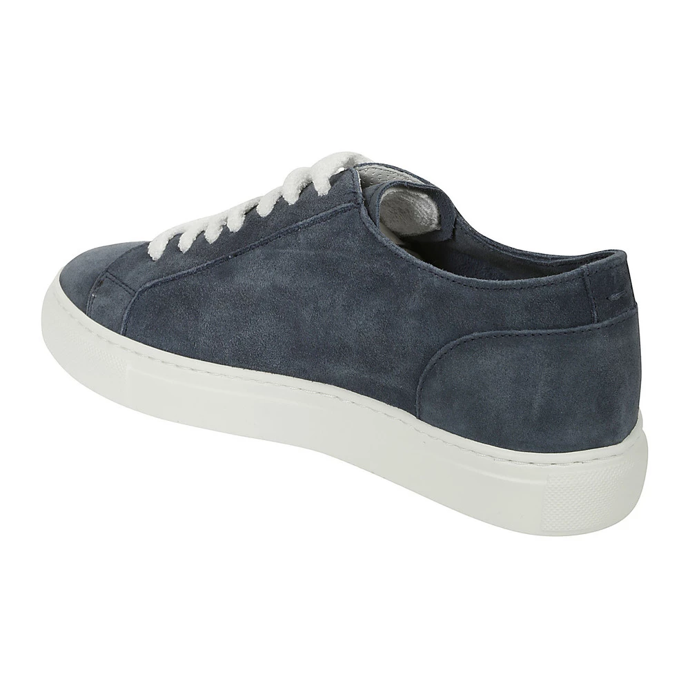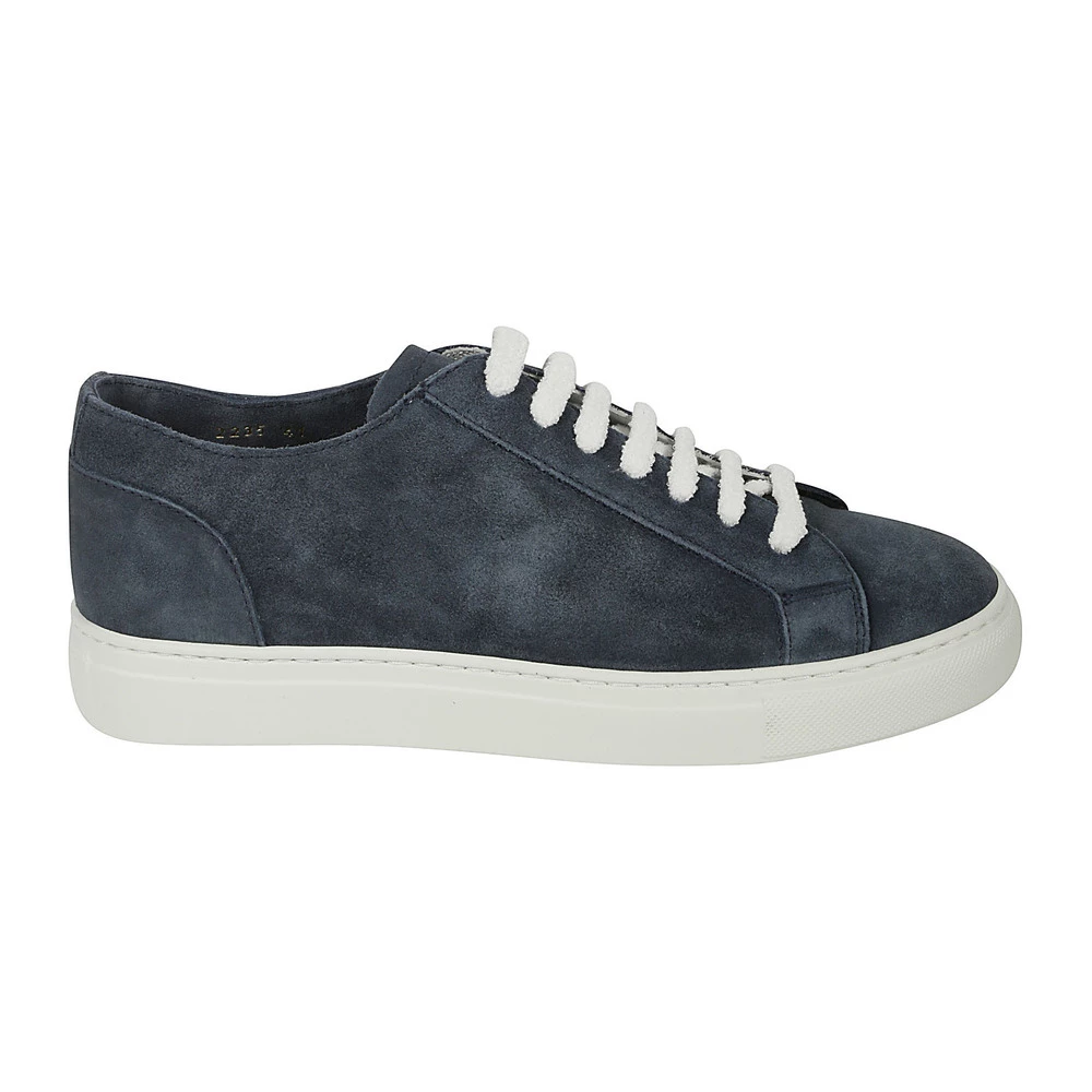 Doucal`s sneaker i blå semsket skinn, hvite snøringer, gummisåle, skinnsåle.