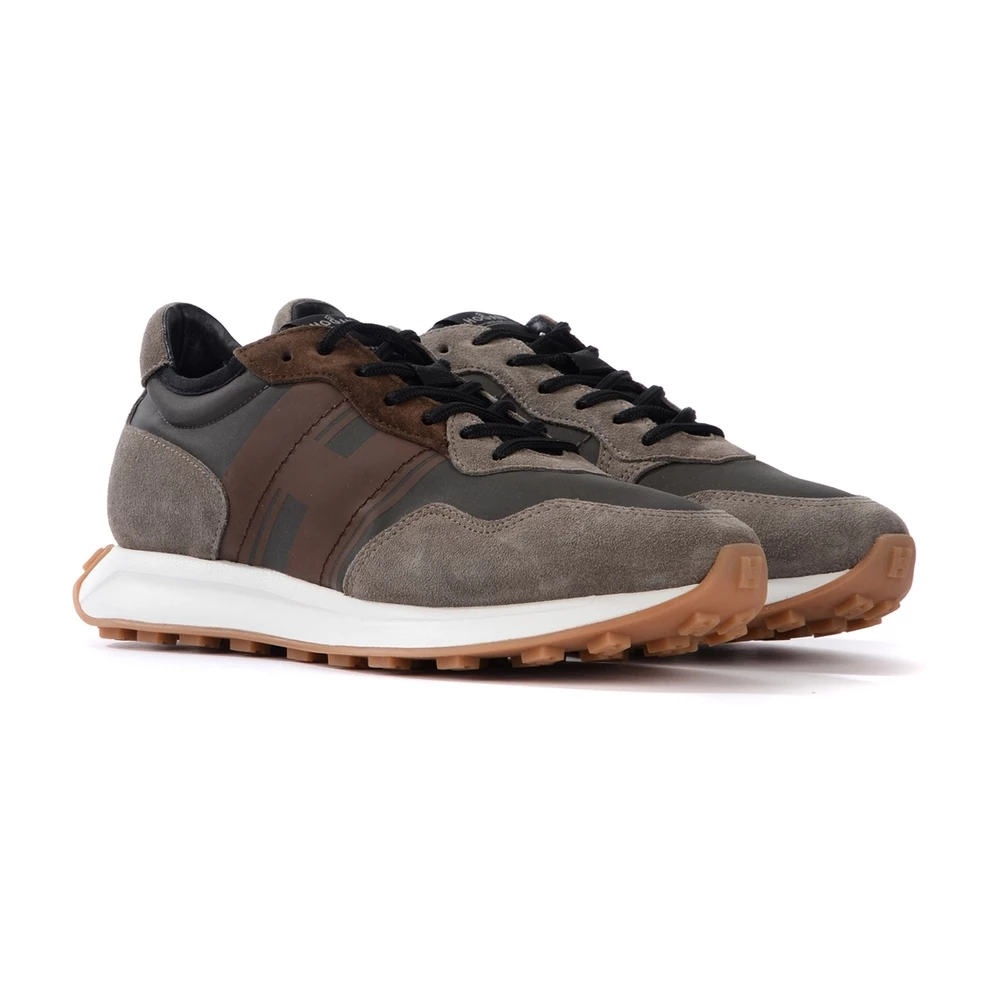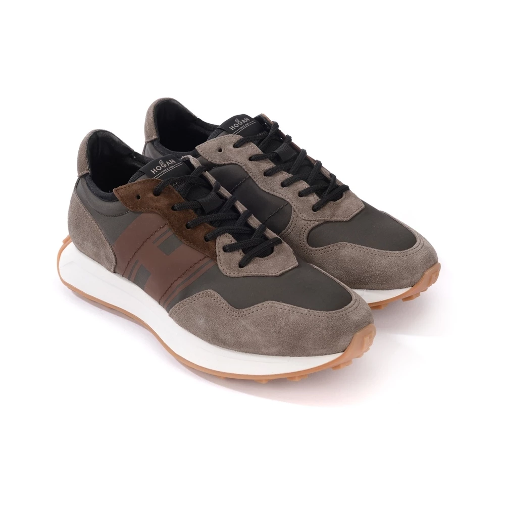 Sneaker Hogan H601 brun i semsket skinn. Innlegg i teknisk stoff Fussbett i minnet skum 8 mm lys gummisåle i EVA og TPU med høyder 4,5 cm høyde