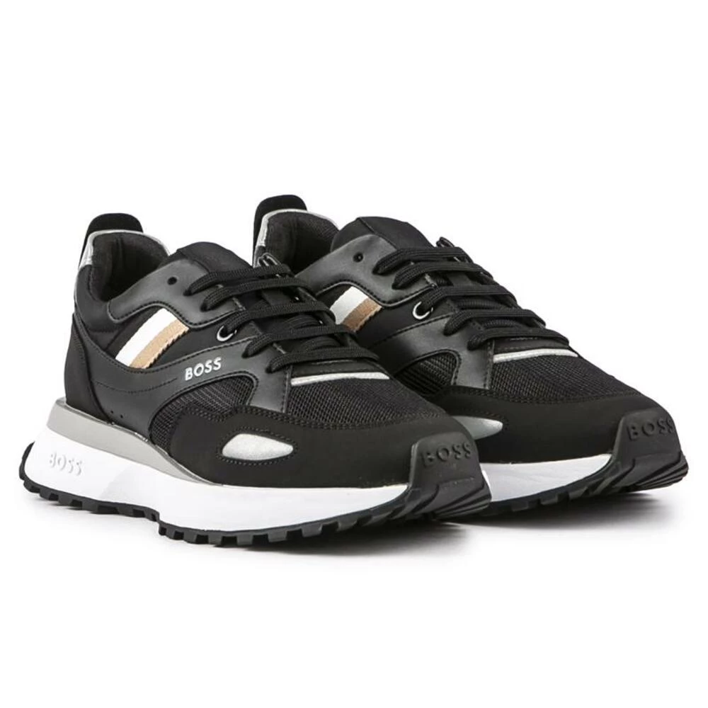 Womens Black Boss Jonah Run Trainers, produsert med skinn og en gummisåle. Med: rene detaljer, nylonfor, komplekse overleggsdetaljer og polstret krage.