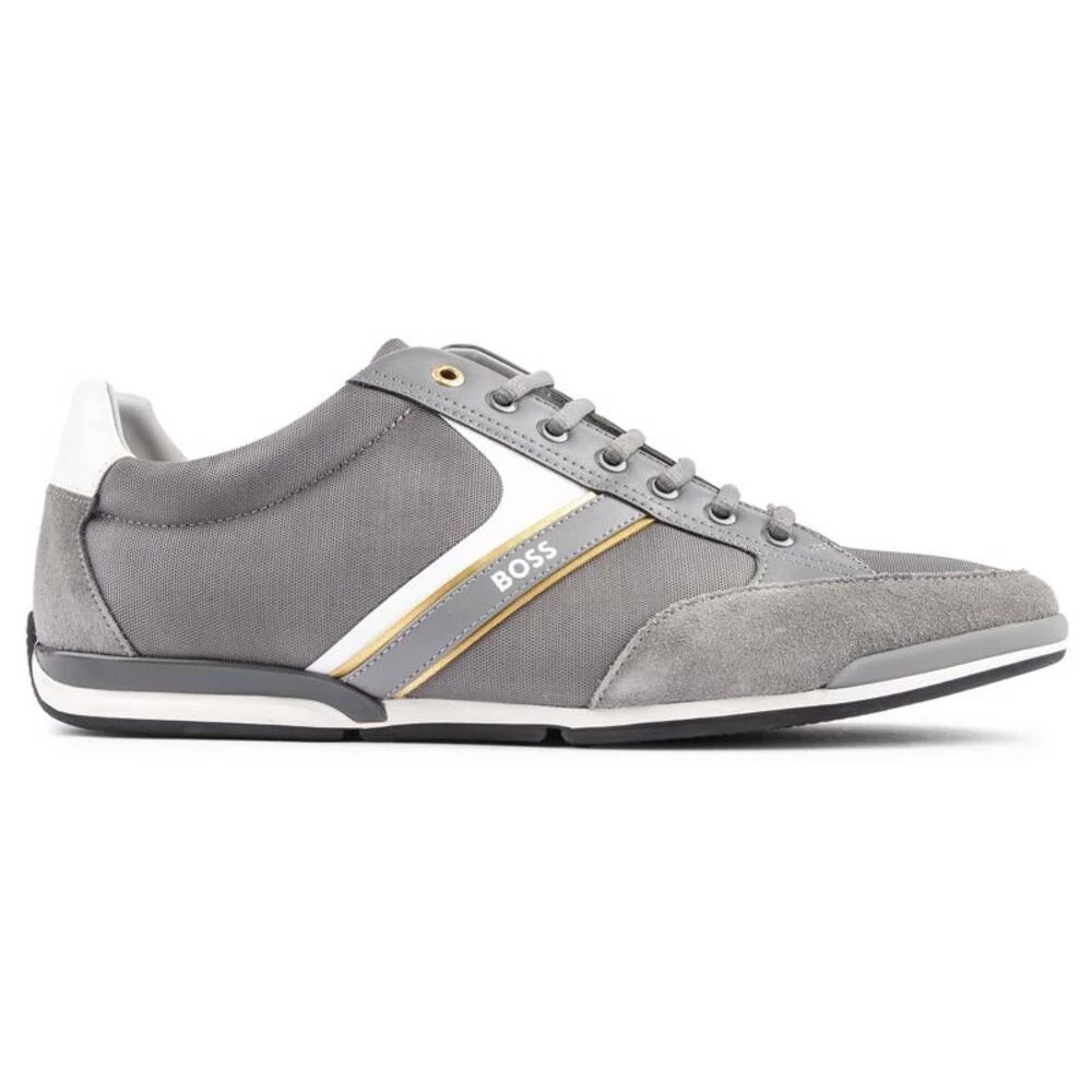 Boss Saturn Low Trainer holder moteinnsatsene høyt og er ferdig i en luksuriøs grå overdel med semsket skinn. Denne stilige, moderne trener har signaturmerkevarebygging, merket topp eyelet og har en lavprofilsål for et elegant designerutseende.