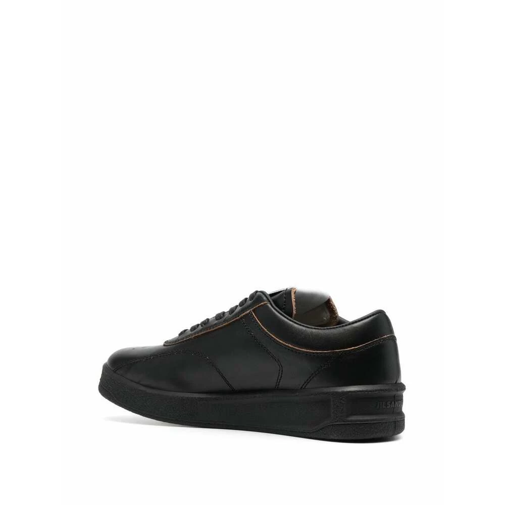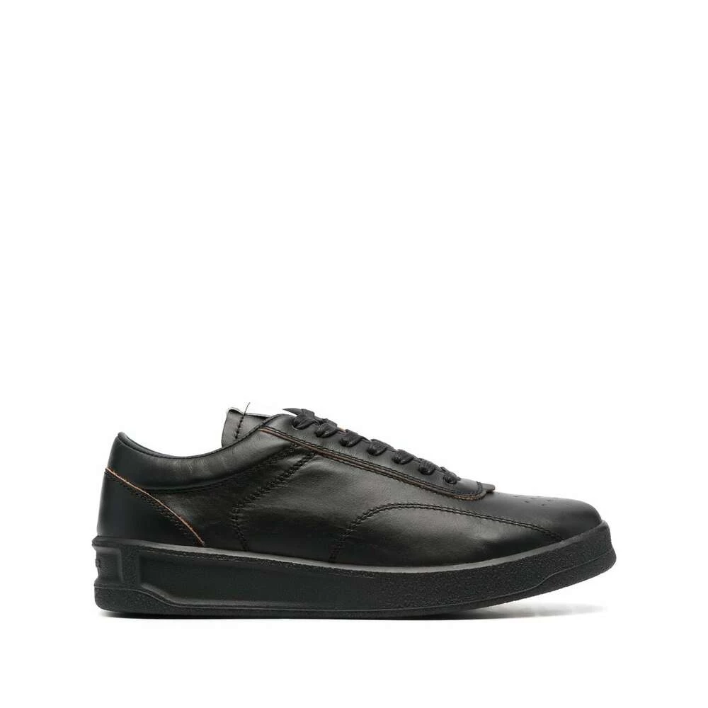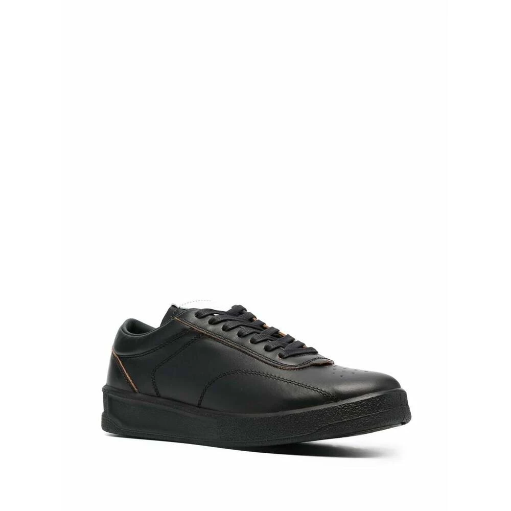 Jil Sander joggesko svart blonder-skinn joggesko fra Jil Sander med svart, kalveskinn, logo-lapp på tungen, preget logo bak, perforert toebox, rund tå, frontfjæring, fotent, merkevareseng og flat gummi såle.