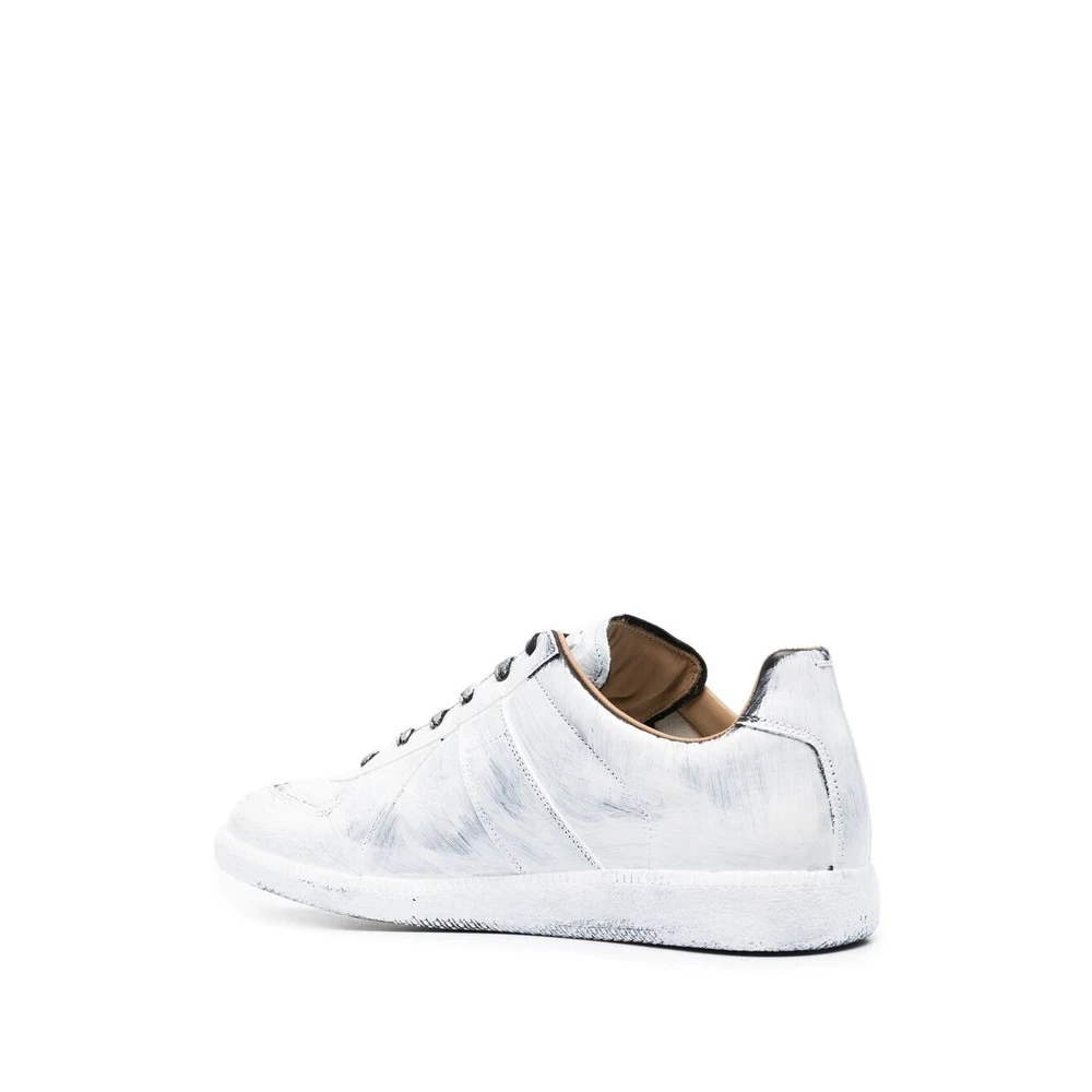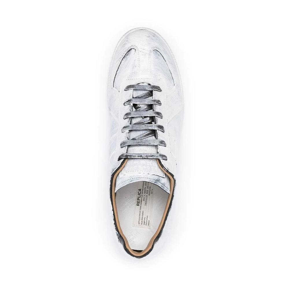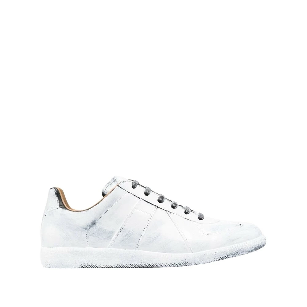 – Designerfarge: hvitkalv lær- maling detalj- logo lapp i tungen- rund tå- front blonder festing- flat gummisåle- laget i Italia