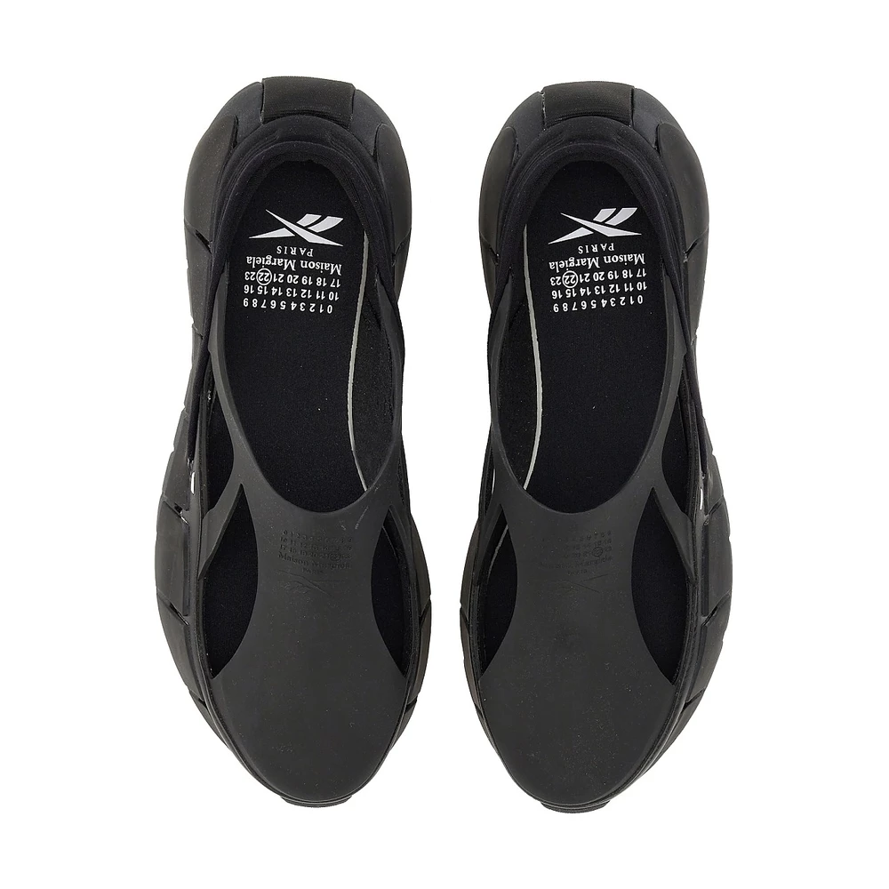 Rubber Sole: 4 cm, utskjærte detaljer ved sidene av den øvre, stoffinnsatsen på hælen, tonen på tone preget logo, skli på.