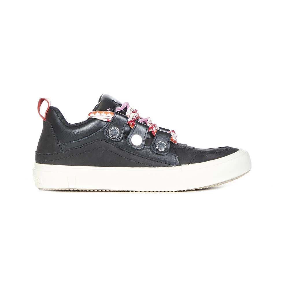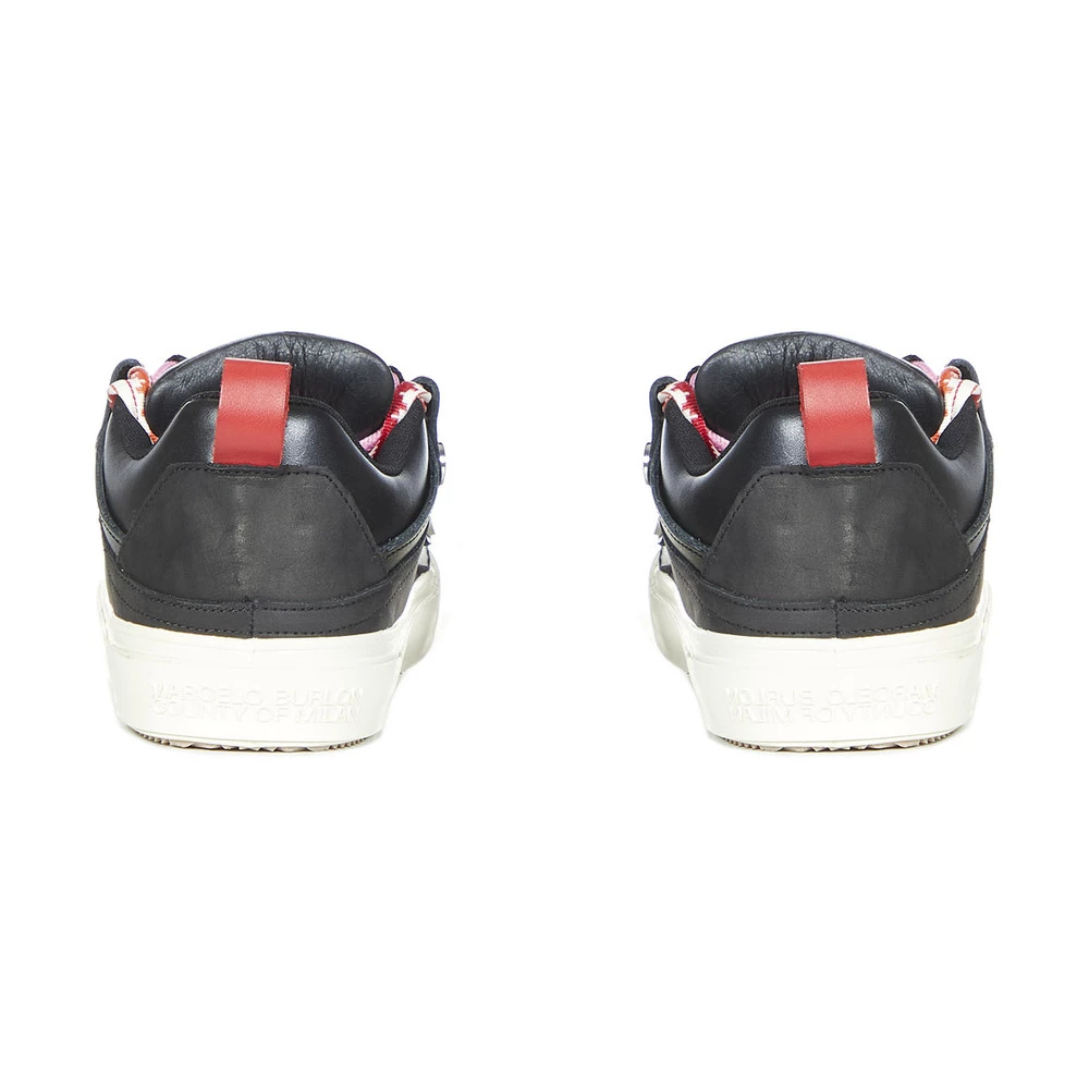 Ticinella Low-Top Black Leather Sneakers med hvite og røde snøringer og hvit gummisåle