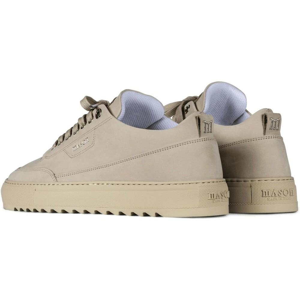 Mason Garments Torino Sneakers Beige FW22 Tonale 19G Produktbeskrivelse Dette Torino -joggesko fra merkevaren Mason Garments er nå tilgjengelig fra oss. Disse skoene er laget av skinn og har et stykke semsket skinn på baksiden og foran. Ryggen har et stykke beige og beige kommer tilbake foran. Tungen på skoen er beige og blonderringene er også gull. Produktsammensetning Materiale: 100% skinn