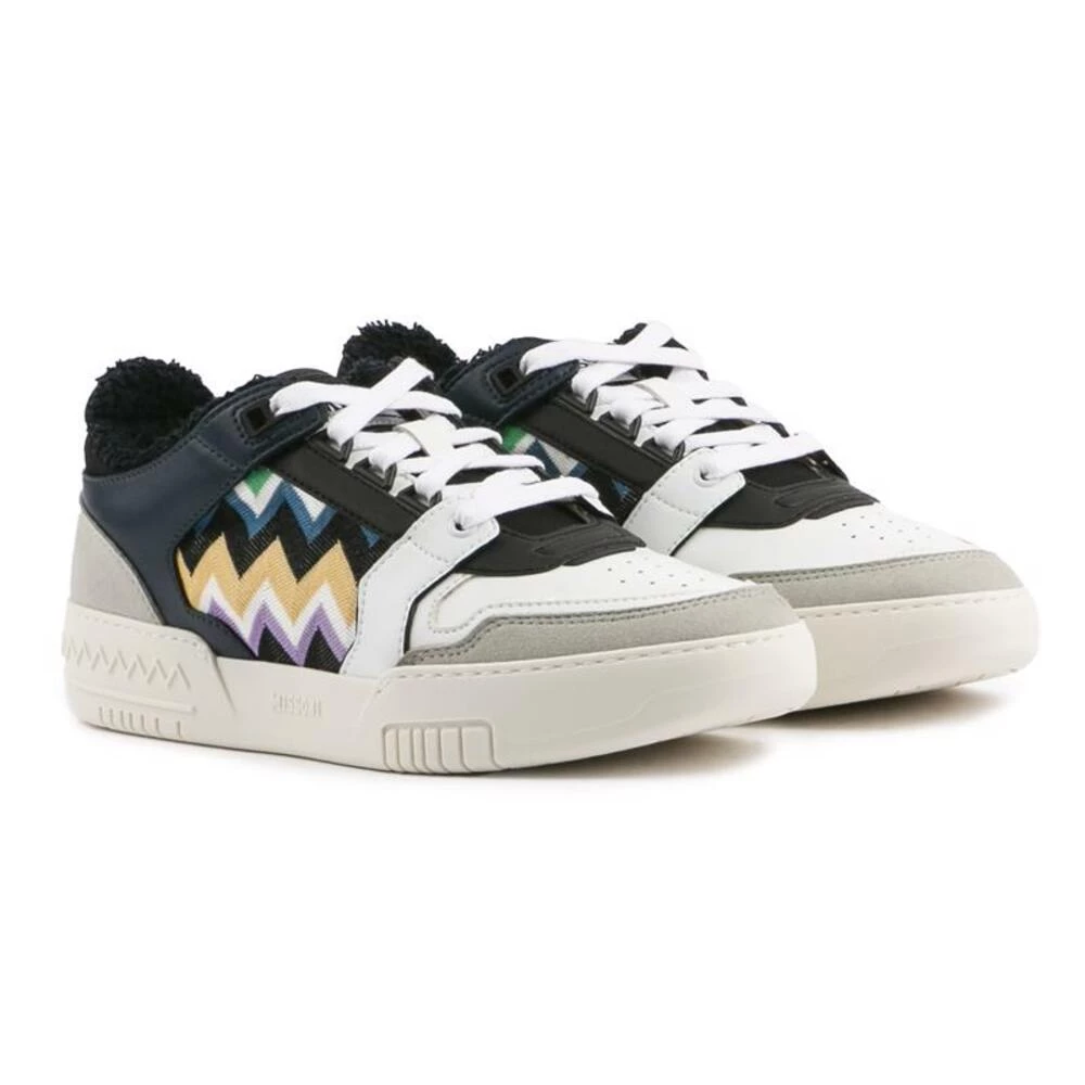 Womens White Missoni Basket Low Trainers, produsert med syntetisk og en gummisåle. Med: Øvre i maisbunnen. Apple base.rebotilia, innersåle i resirkulert skum, foring i bomull, snøringer i bomull og ooutsåle i bio tyggegummi.