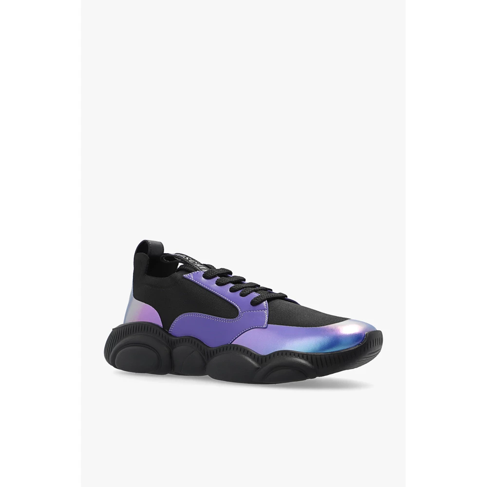 Svarte og lilla joggesko med en holografisk effekt fra Moschino. Dette blonderparet er laget av stoff med faux skinntrimmer, og har en logo-detalj og svart gummisåle med merkets signatur Teddy Bear-motiv.