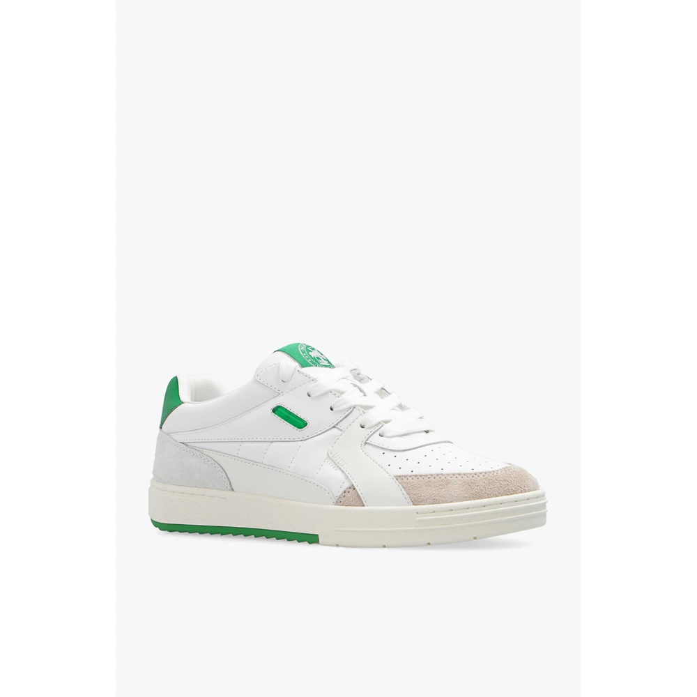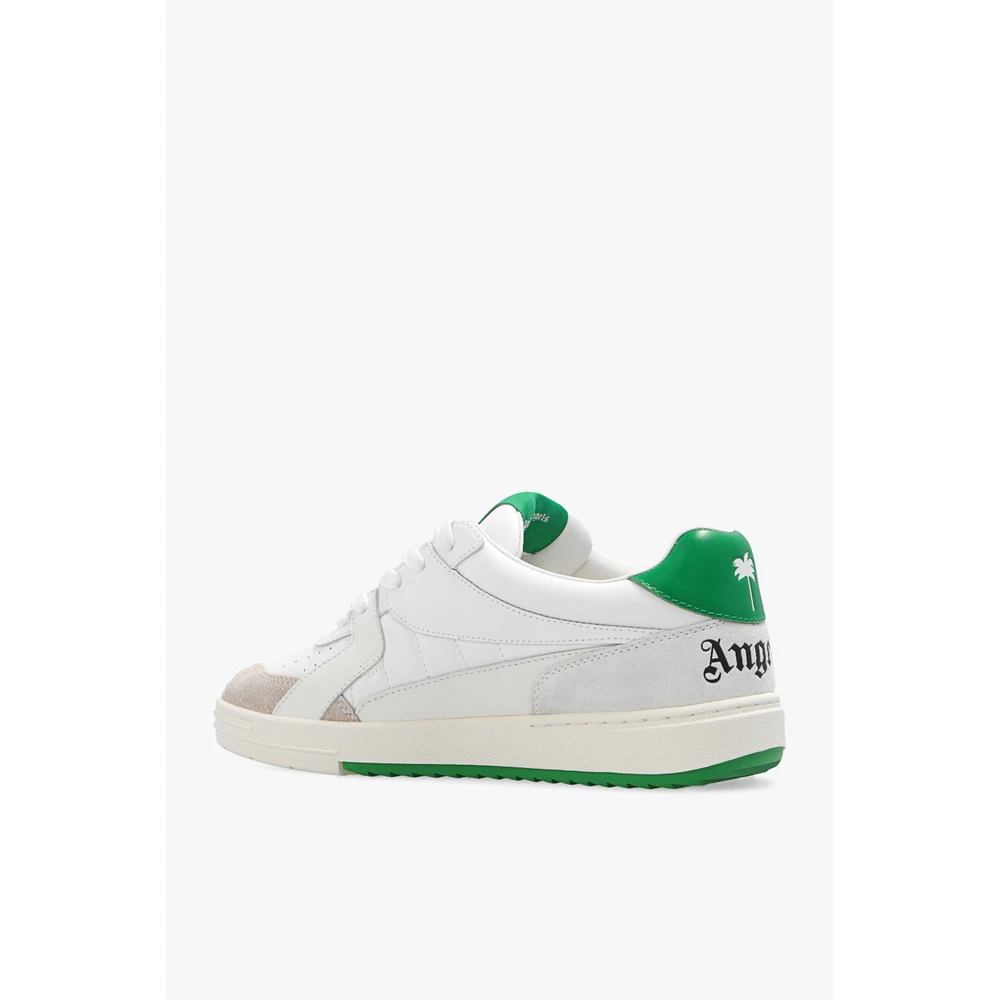 Hvite, krem og grønne joggesko fra Palm Angels. Dette blonderparet er laget av lær og semsket skinn og har en svart og hvit logo, perforeringer, applikasjon på siden og gummisåle i krem og grønt.