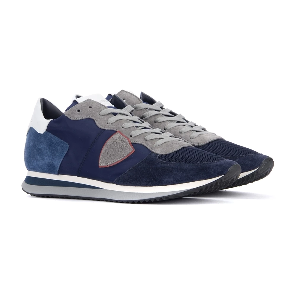 Sneaker Philippe -modellen TRPX Navy og Gray Blue laget av semsket skinn og nylonstoff. Lærfôr og svamp bomull i Eva såle sydd 3 cm med kamuflasjeinnsats laget i Italia