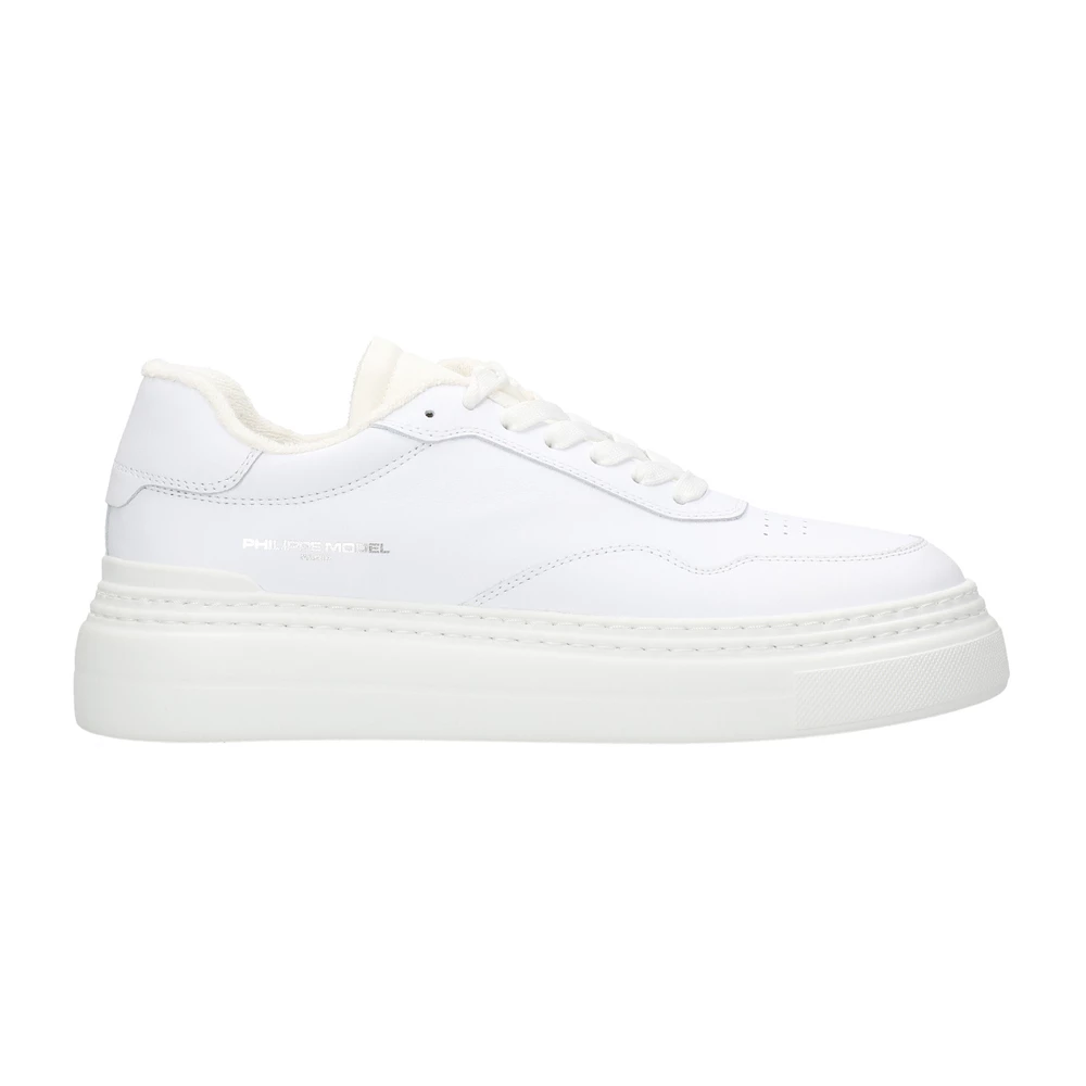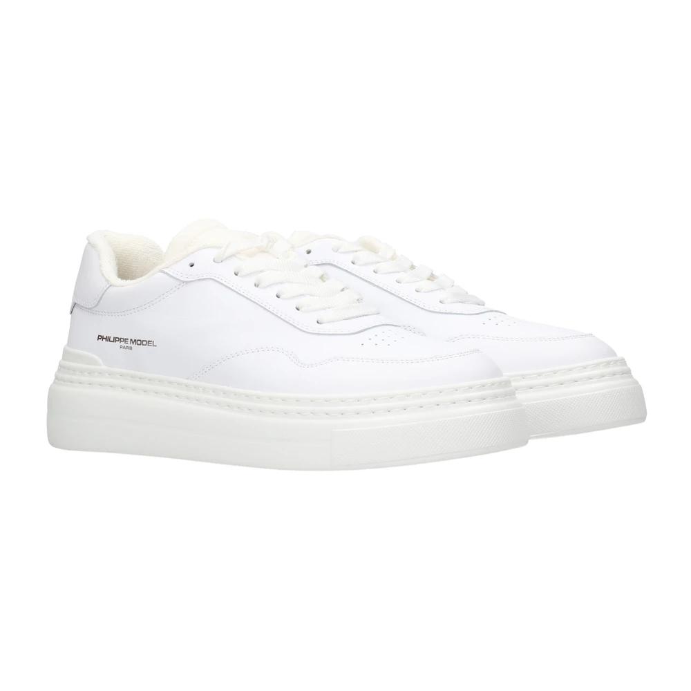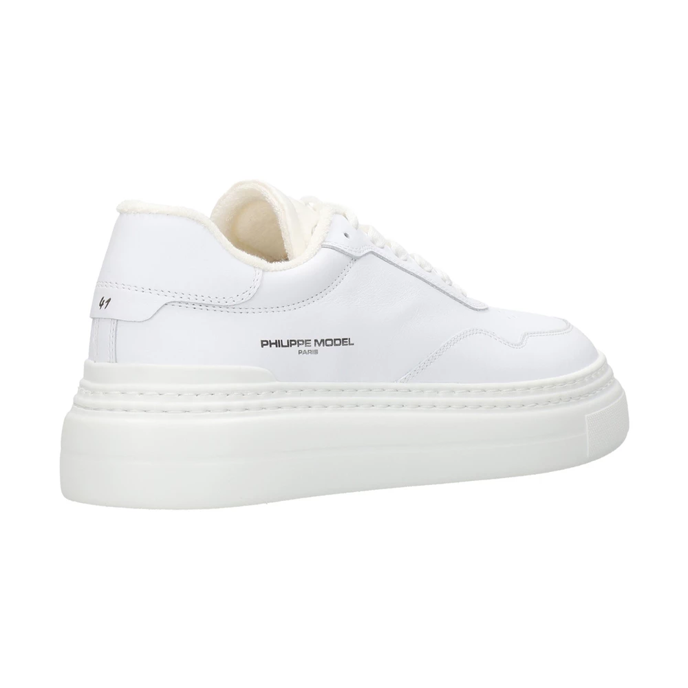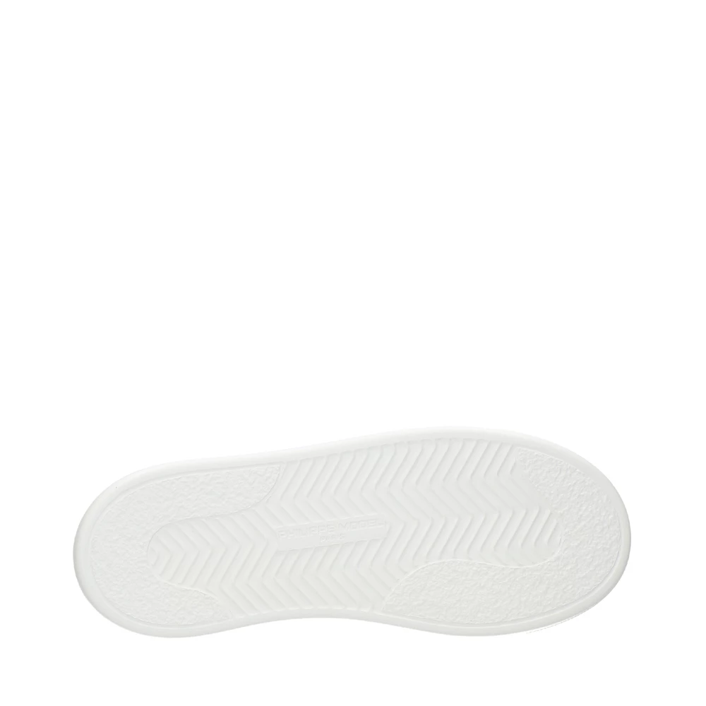 White ‘Etienne Low’ joggesko fra Philippe -modellen. Denne snøremodellen er laget av skinn, og sitter på en hvit gummisåle og har dekorative perforeringer og sømmer detaljer og en trykt sølvfarget logo.