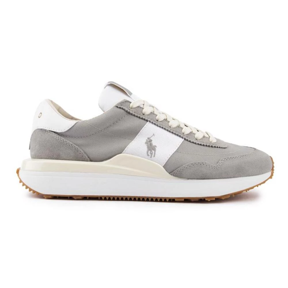 Mens grå polo ralph lauren tog 89 trenere, produsert med skinn og en gummisåle. Med: Polo Heel Branding, Polo Branded Sole, Polo Tongue Branding and Textile Fôr.