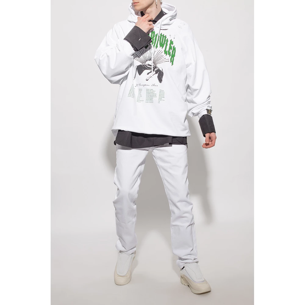 Krem ‘antei’ blonder-joggesko fra Raf Simons. Dette paret er trimmet med strukturert stoff i hvitt, og er komplett med en borrelås-fast byttbar tungeapplikasjon i svart og krem gummi såle med en hevet logo.