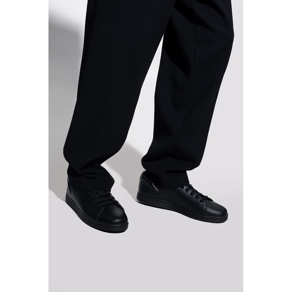 Black ‘Orion’ joggesko fra Raf Simons. Denne blondermodellen sitter på en svart gummisåle og viser en preget sølvfarget logo på siden.
