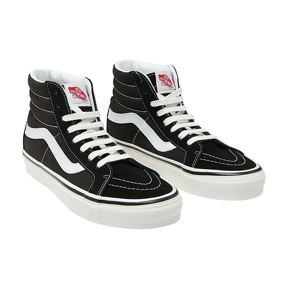 Vans joggesko nero svart lerret og semsket skinn sk8-hi 38 dx joggesko med en rund tå, blonder foran, kontrasterende paneler, ankelhøyde, sømdetaljer, logo lapp og flat gummisåle.