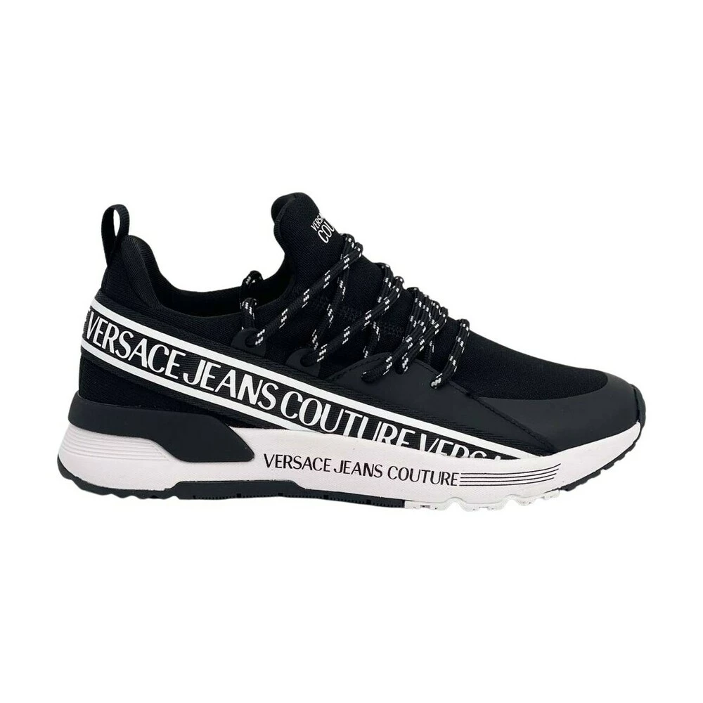 Versace Jeans Couture fleksible joggesko med svart og hvit snøredetaljer. Merkelogo rundt skoen.